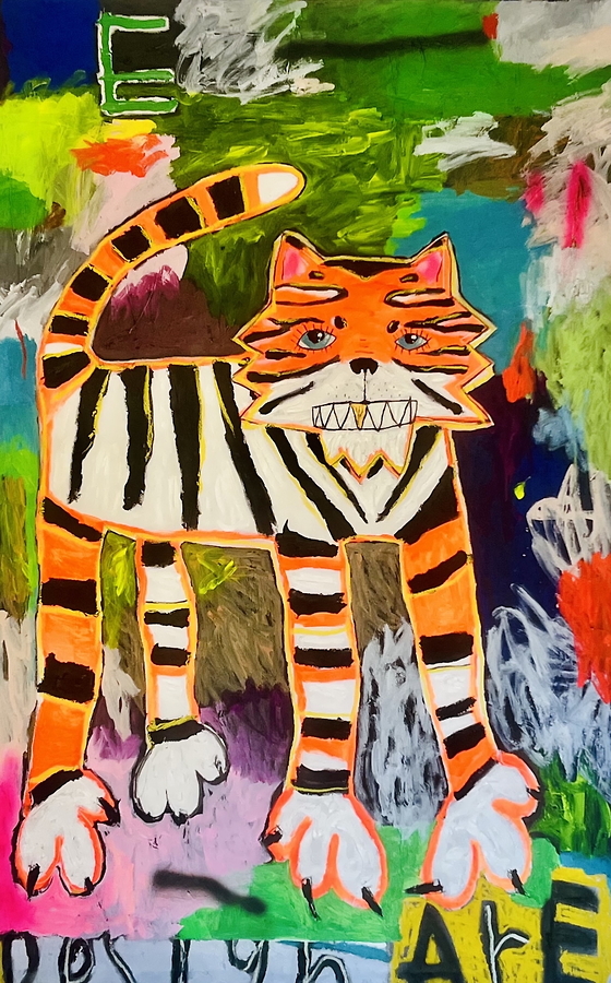 Medium: Acrylic, spray paint, oil stick and charcoal on canvas, signed by the artist