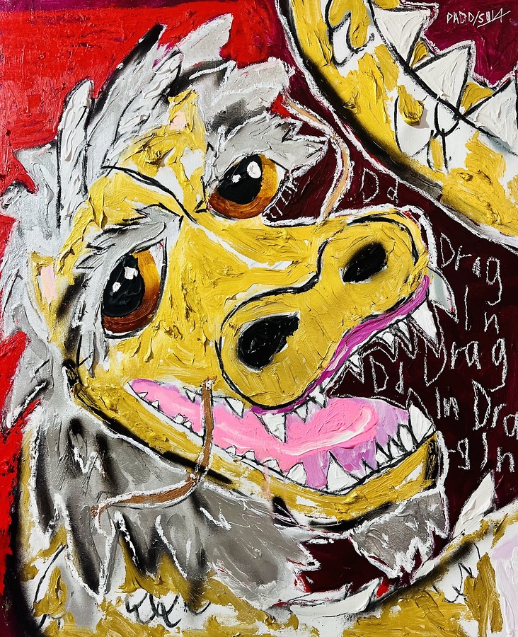 Medium: Acrylic, oil stick, spray paint and charcoal on canvas, signed by the artist
