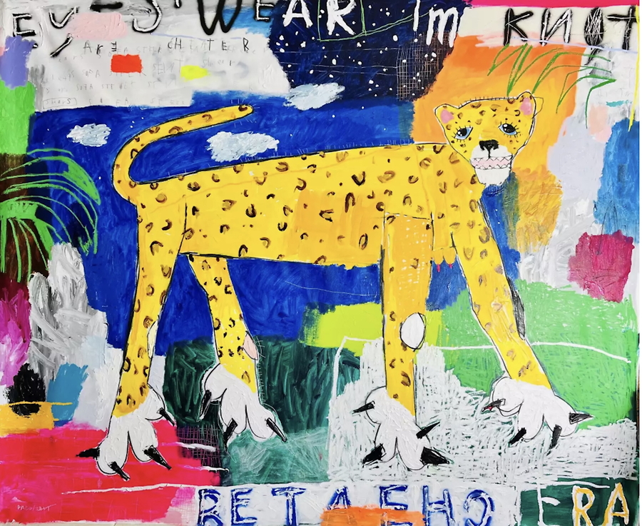 Medium: Acrylic, oil stick, spray paint, charcoal and pencil on canvas, signed by the artist