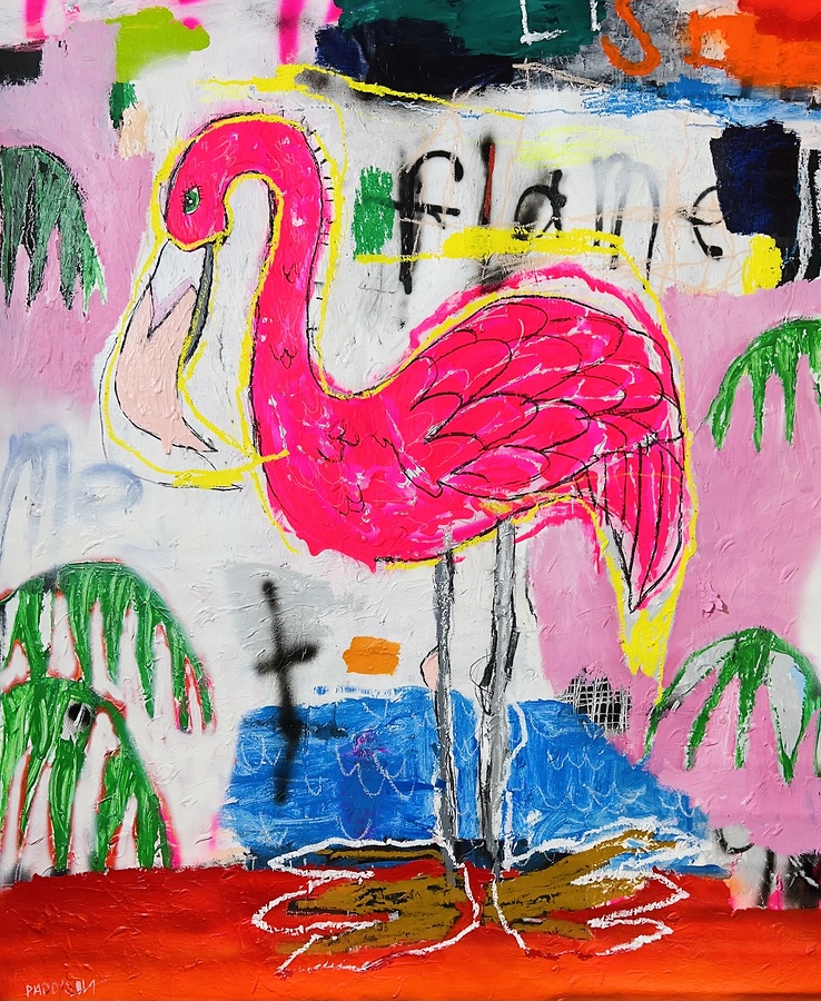 Medium: Acrylic, oil stick, spray paint and charcoal on canvas, signed by the artist